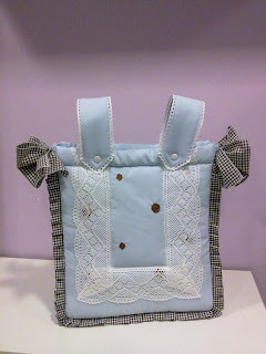 El nuevo tejido de verano, esta vez en saco... Combinando el cubre con pique marino y el resto de combinación en listita camel... el bolso es un nuevo modelo de un tamaño ideal, sobre todo para las sillas ligeras... ¿que os parece?